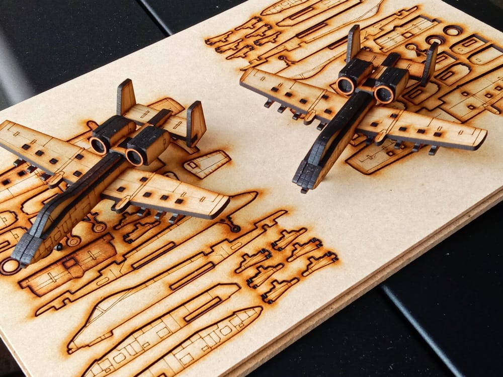 This is a digital file designed for laser cutting machines to create a-10 thunderbolt warthog aircraft 3d wooden puzzle. The design is ready to cut and can be customized to suit your needs. It is available for free download in cdr file format. The download is provided as a zip file, which includes images and vector design. This file is licensed under Creative Commons.
